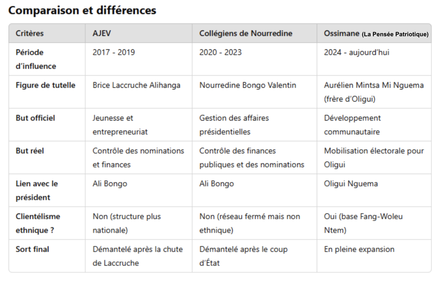Les comparaisons avec des structures similaires du passé, comme l’AJEV ou les Collégiens de Nourredine Bongo Valentin, sont frappantes. Ces organisations ont toutes disparu une fois leurs mentors tombés du pouvoir. De même, Ossimane semble vouée à suivre cette voie. Si Oligui Nguema perd le pouvoir, l’association perdra toute sa légitimité et son utilité, comme l’ont fait avant elle les structures politiques du régime Bongo. Ce phénomène de recyclage des réseaux d’influence ne fait que renforcer l’idée que ces organisations sont des instruments temporaires créés pour maintenir une emprise sur le pouvoir, mais dont la survie est liée à la stabilité du régime en place.